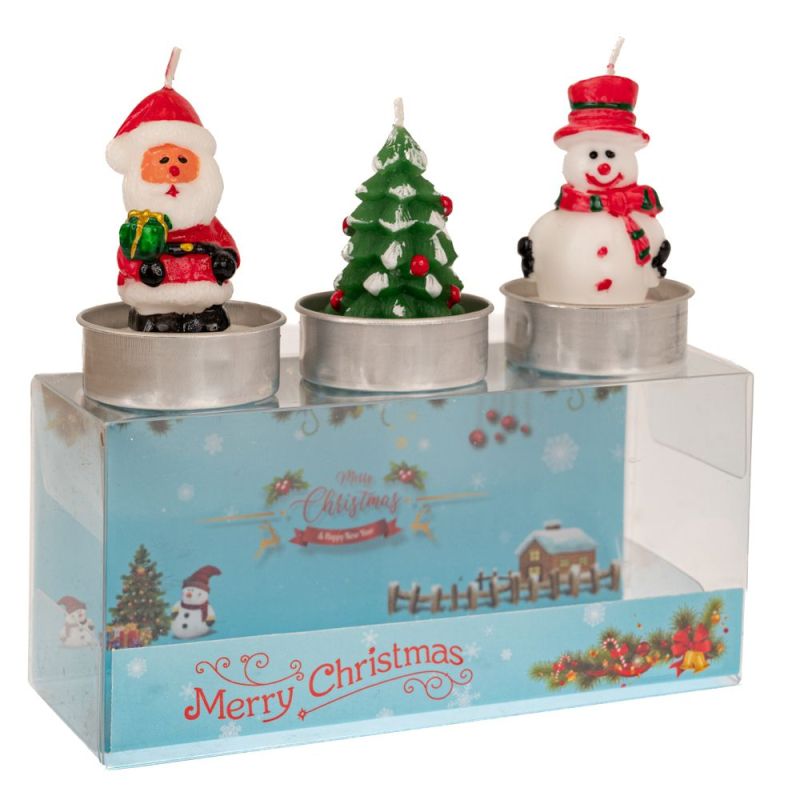 КОМПЛЕКТ ОТ 3 КОЛЕДНИ СВЕЩИ С ФИГУРКИ В КУТИЯ