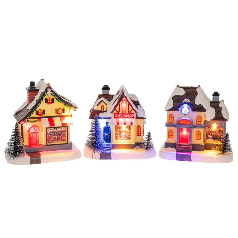 КОМПЛЕКТ ОТ 3 КЪЩИ С LED СВЕТЛИНА 10X7X10 СМ, ЗАХРАНВАНИ С БАТЕРИЯ