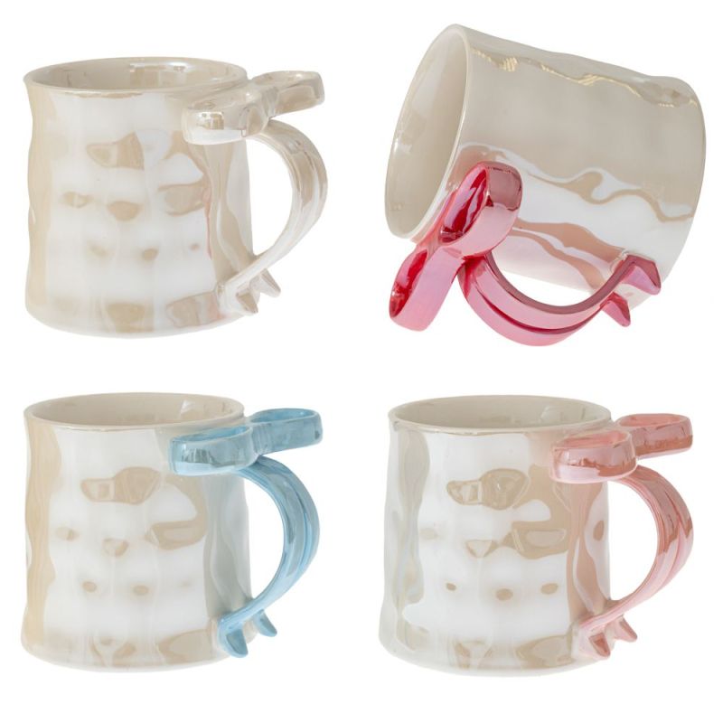 КРЕМОВА КЕРАМИЧНА ЧАША С ДРЪЖКА И ПАПИОНКА В 4 ЦВЯТА