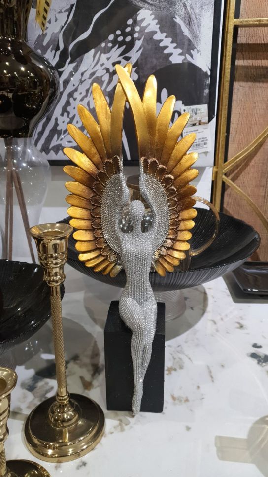 ПЛАСТИКА ЖЕНА С КРИЛА, ПОЛИРЕЗИН, СРЕБЪРНО- ЗЛАТНО 16х11 х 40 см