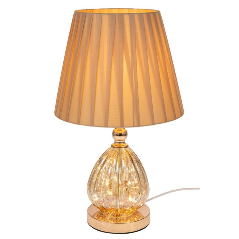 ПРОЗРАЧНА СТЪКЛЕНА ЛАМПА С БЕЖОВА ШАПКА И ДОПЪЛНИТЕЛНО ОСВЕТЛЕНИЕ В ОСНОВАТА 43 СМ