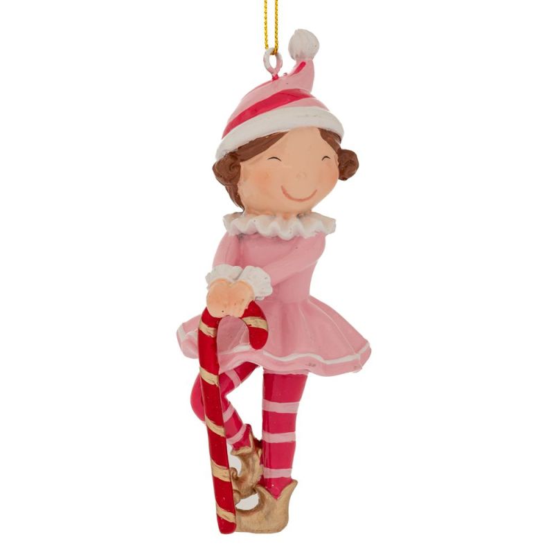 РОЗОВА ПОЛИРЕЗИНОВА ВИСЯЩА ФИГУРА ЕЛФ С ЗАХАРЕНО БАСТУНЧЕ (УКРАСА) 5.5X4.5X12.5СМ