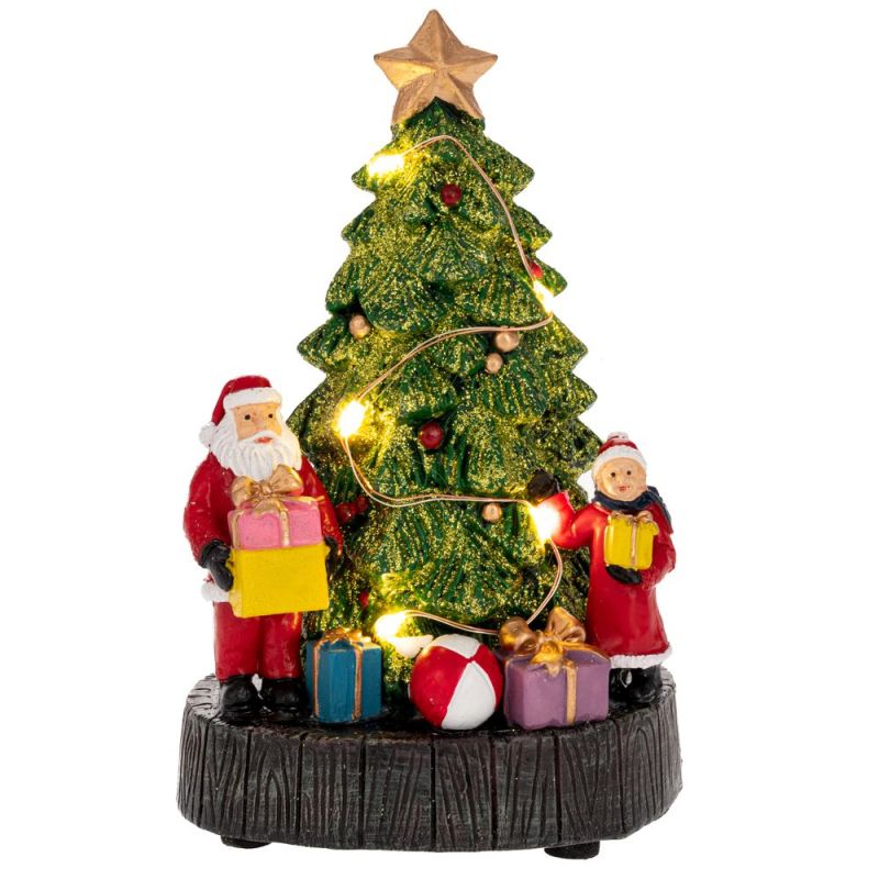 СВЕТЕЩА ЕЛХА С ПОДАРЪЦИ И ДЯДО КОЛЕДА 10X8X16СМ, С БАТЕРИИ
