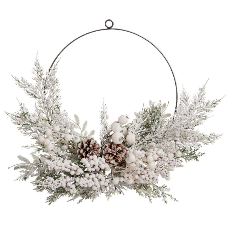 СНЕЖЕН ВЕНЕЦ С БЕЛИ ПЛОДОВЕ И БОРОВИ ШИШАРКИ 30 СМ