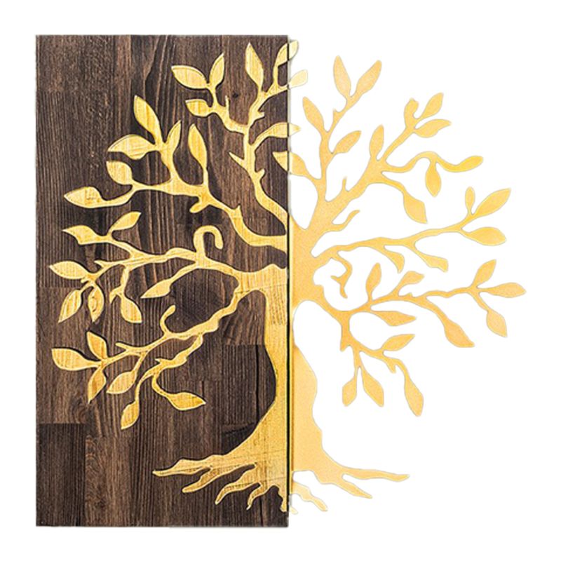 СТЕННА ДЕКОРАЦИЯ ФИГУРА НА ДЪРВО HM4751-МЕТАЛ В ЗЛАТИСТО-ДЪРВО 58X3 (ДЕБЕЛИНА)X58ВСМ.