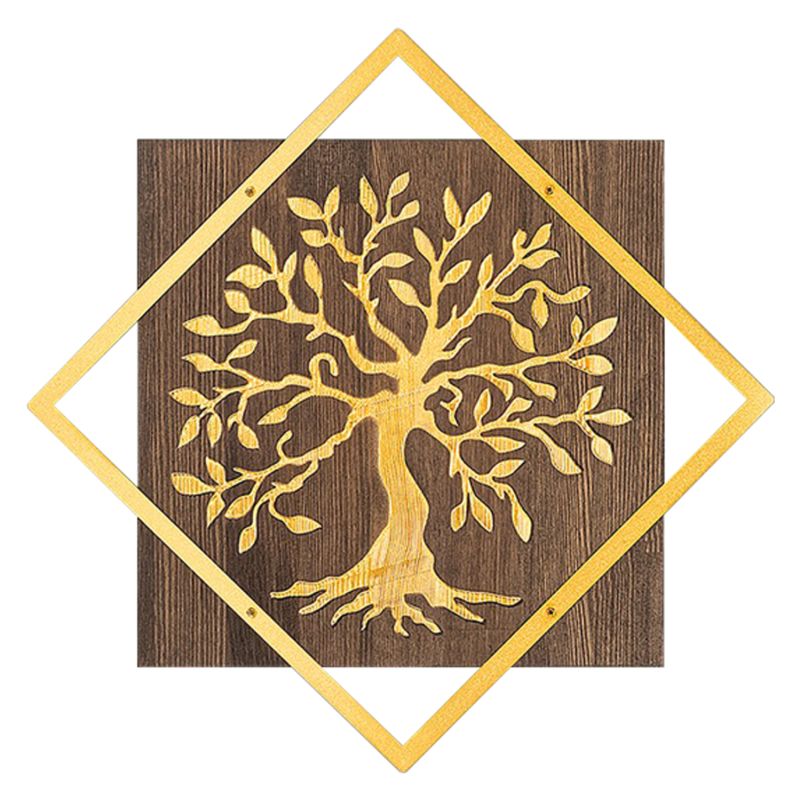 СТЕННА ДЕКОРАЦИЯ ФИГУРА НА ДЪРВО HM4752-МЕТАЛ В ЗЛАТИСТО-ДЪРВО 54X3 (ДЕБЕЛИНА)X54ВСМ.