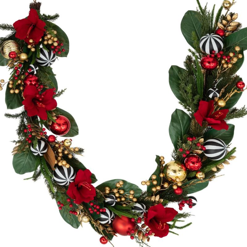 ЧЕРВЕН ГИРЛЯНД С ИЗКУСТВЕНИ ЦВЯТЯ И ЧЕРВЕНИ ТОПКИ 23Х15Х183СМ