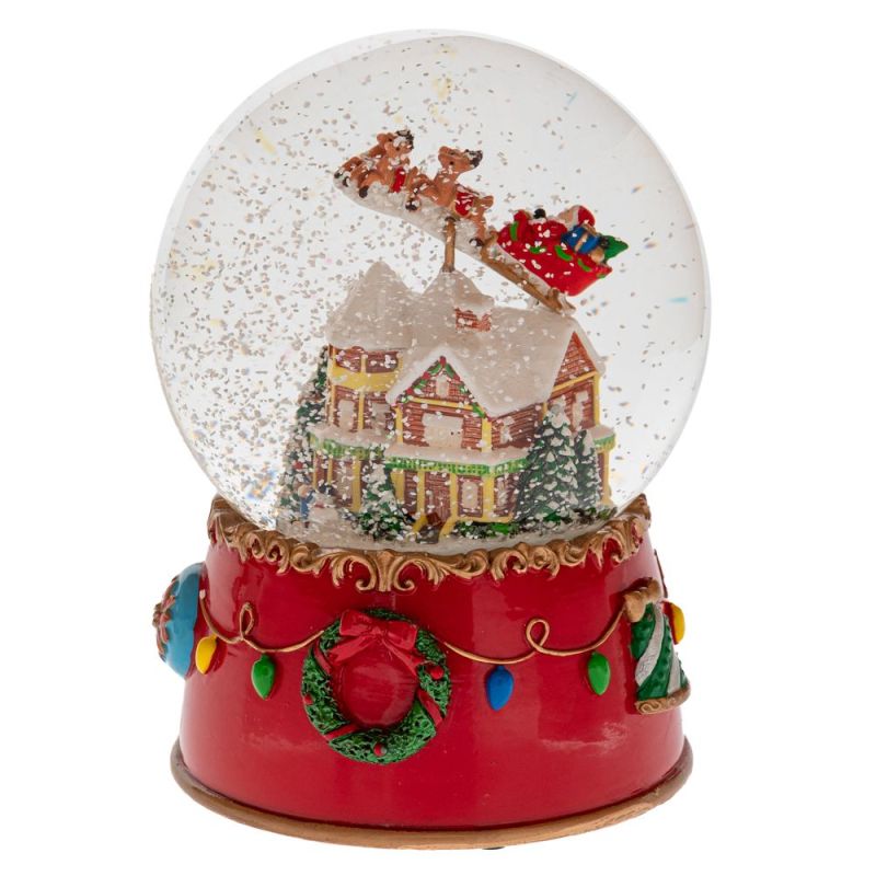 ЧЕРВЕНА ПОЛИРЕЗИНОВА ВОДНА ТОПКА С КОЛЕДНА СЦЕНА И МУЗИКА Φ13.5Х16.5 СМ
