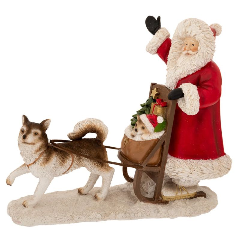 ЧЕРВЕНА ПОЛИРЕЗИНОВА ФИГУРКА НА ДЯДО КОЛЕДА В ШЕЙНА С КУЧЕ 21X12.5X22.5СМ