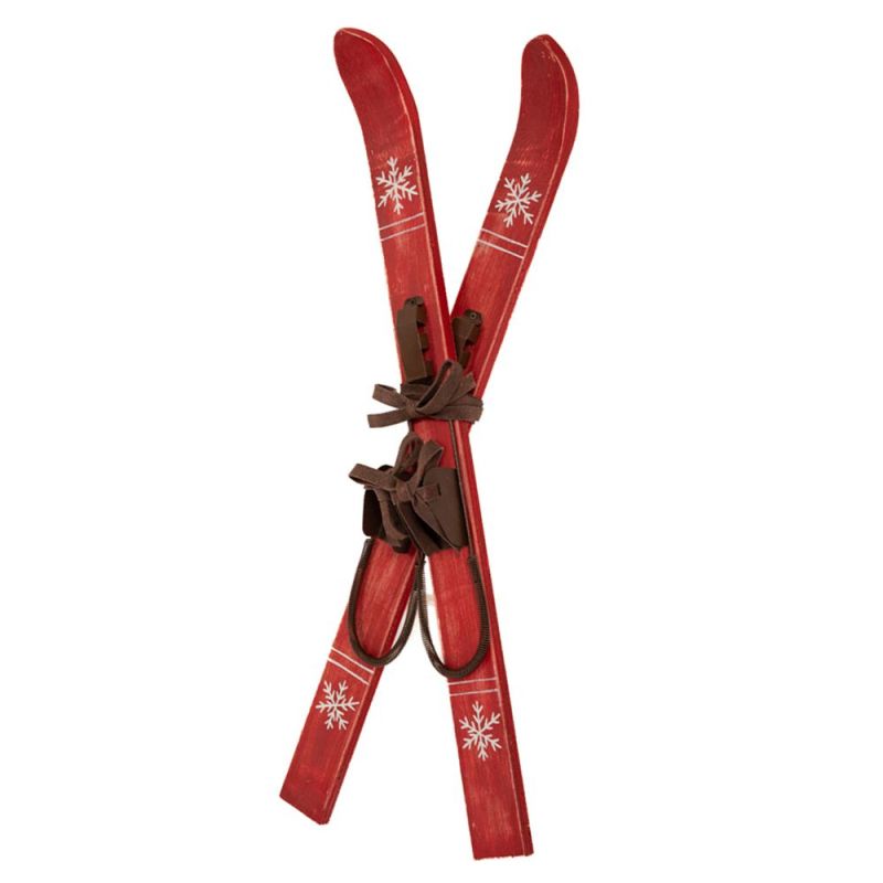 ЧЕРВЕНИ ДЪРВЕНИ АНТИЧНИ СКИ И ЩЕКИ 25X7X57СМ