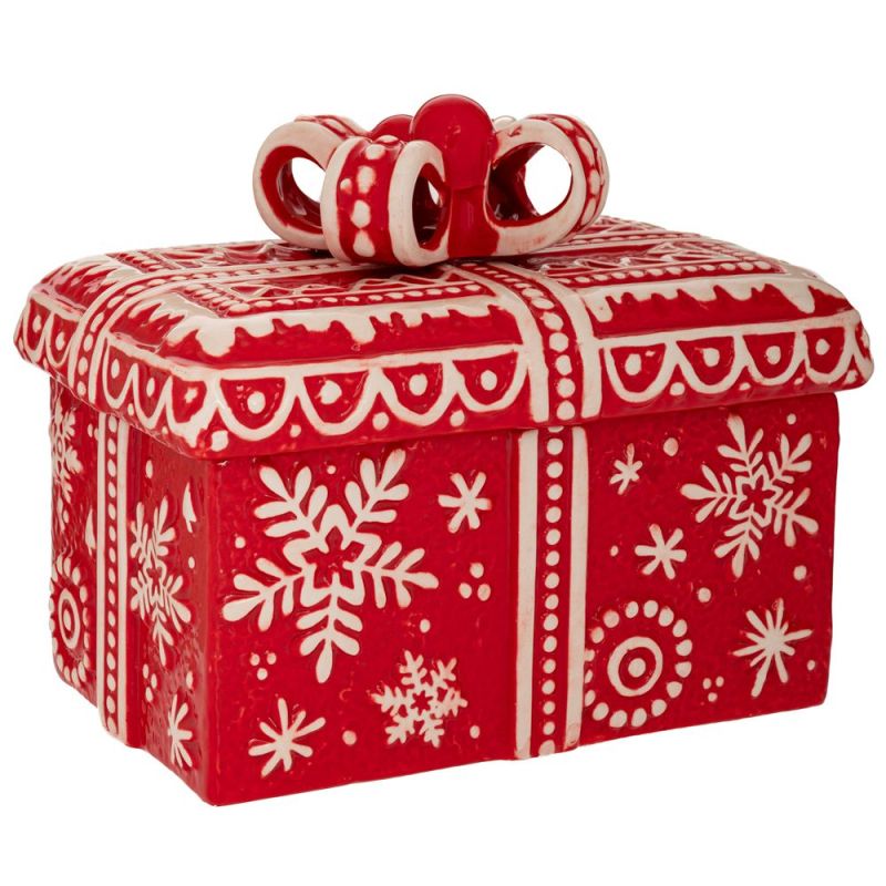 ЧЕРВЕНО-БЯЛ КОЛЕДЕН КЕРАМИЧЕН БУРКАН ЗА БИСКВИТИ 21Х15Х18СМ