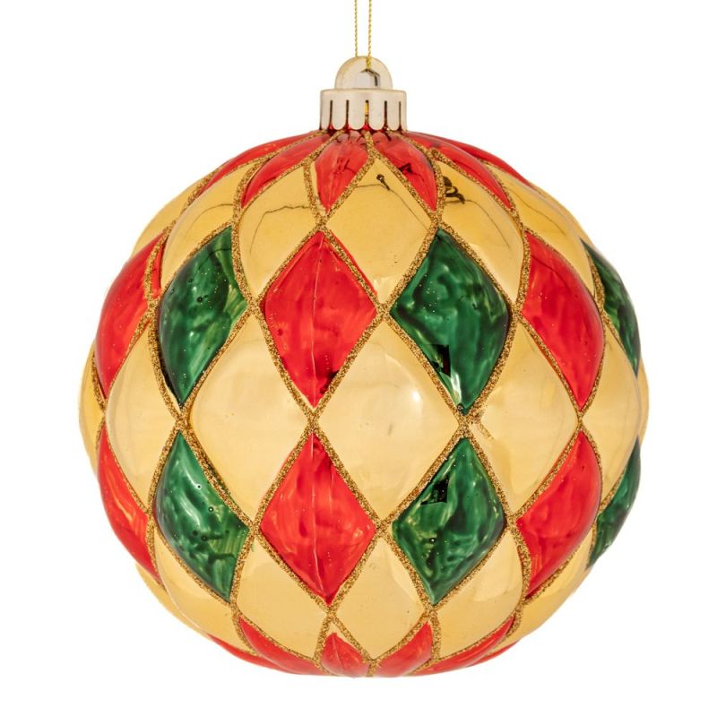 ЧЕРВЕНО-ЗЕЛЕНА ГЛАНЦОВА ПЛАСТМАСОВА ТОПКА С ДИЗАЙН 15 СМ