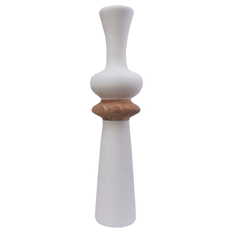 ДЕКОРАТИВНА ПОДОВА ВАЗА NEBULA HM4660.02L ФИБРОЦИМЕНТ В БЯЛ ЦВЯТ - ТИКОВО ДЪРВО Φ45X172HСМ.
