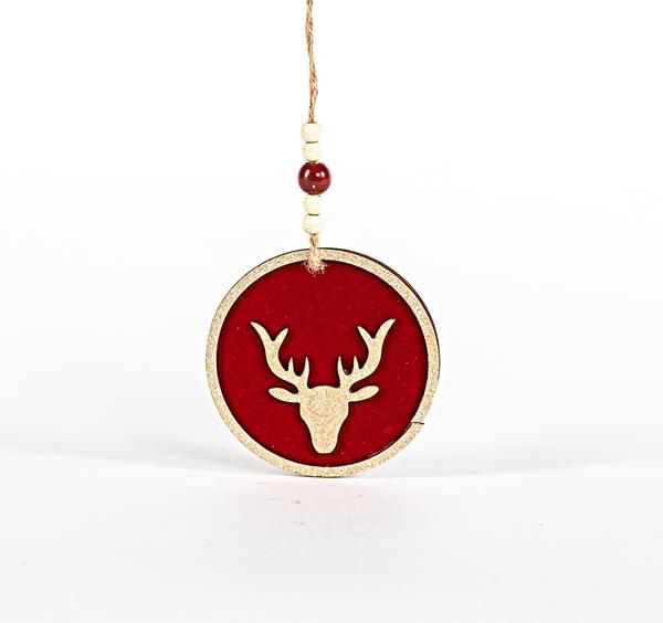 ДЪРВЕНА УКРАСА, СЕВЕРЕН ЕЛЕН, ЧЕРВЕНА, С КАДИФЕ, 11x0,5см
