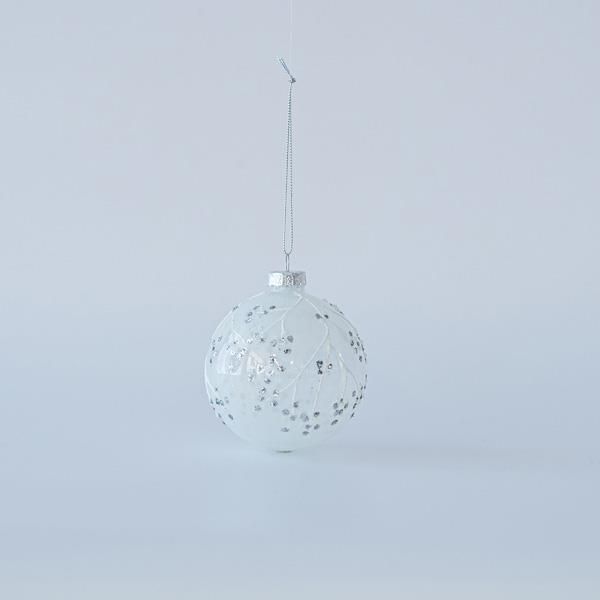 КОЛЕДНА СТЪКЛЕНА ТОПКА, БЯЛА С БЕЛИ ДИЗАЙНИ, КОМПЛЕКТ ОТ 4 БРОЯ, 10 см