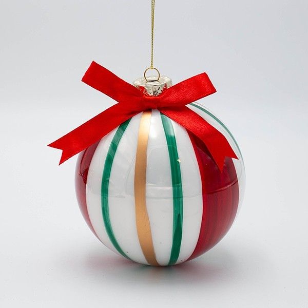 КОЛЕДНА СТЪКЛЕНА ТОПКА, ЗЕЛЕНО-БОНБОНИРАНО, ЧЕРВЕНО, ЗЛАТНО С ПАНДЕЛХА, КОМПЛЕКТ ОТ 2 БРОЯ, 12 см