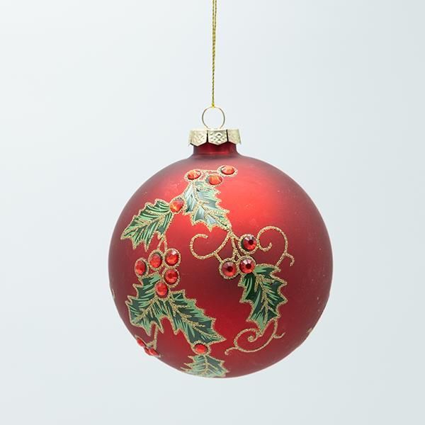 КОЛЕДНА СТЪКЛЕНА ТОПКА, МАТОВ ЧЕРВЕН ЦВЯТ С ИМЕЛ, КОМПЛЕКТ ОТ 4 БРОЯ, 10 см