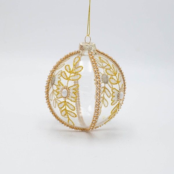 КОЛЕДНА СТЪКЛЕНА ТОПКА, ПРОЗРАЧНА С БЯЛА ПЕРЛА, КОМПЛЕКТ ОТ 4 БРОЯ, 10 см