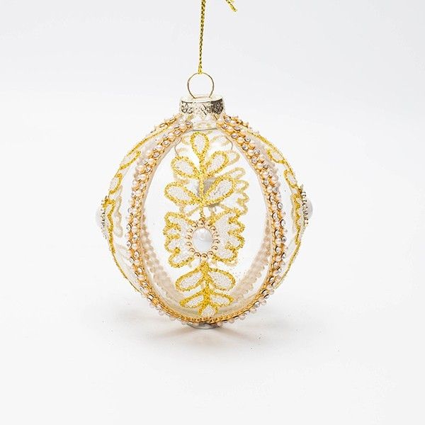 КОЛЕДНА СТЪКЛЕНА ТОПКА, ПРОЗРАЧНА С БЯЛА ПЕРЛА, КОМПЛЕКТ ОТ 4 БРОЯ, 8 см