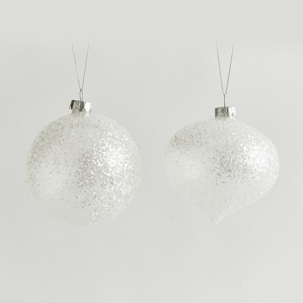 КОЛЕДНА СТЪКЛЕНА ТОПКА, ПРОЗРАЧНА, С БЛЯСЪК, 2 ФОРМИ, КОМПЛЕКТ ОТ 4 БРОЯ, 10 см