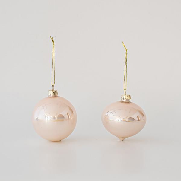 КОЛЕДНА СТЪКЛЕНА ТОПКА, РОЗОВА, ПЕРЛЕНА, 2 ФОРМИ, КОМПЛЕКТ ОТ 4 БРОЯ, 10 см