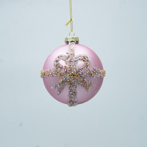 КОЛЕДНА СТЪКЛЕНА ТОПКА, СВЕТЛО РОЗОВА С ПАНДА ЗА ШАМПАНСКО, КОМПЛЕКТ ОТ 4 БРОЯ, 10 СМ