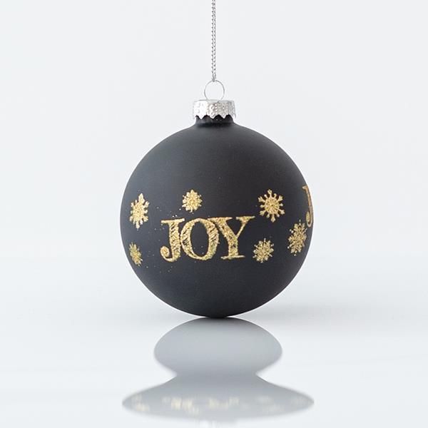 КОЛЕДНА СТЪКЛЕНА ТОПКА, ЧЕРНА МАТОВА, СЪС ЗЛАТИСТИ ДИЗАЙНИ, КОМПЛЕКТ ОТ 4 БРОЯ, 8 см