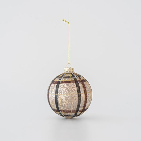 КОЛЕДНА СТЪКЛЕНА ТОПКА, ШАМПАНСКО, С КАФЯВИ И ЗЛАТИСТИ ДИЗАЙНИ, КОМПЛЕКТ ОТ 4 БРОЯ, 10 СМ