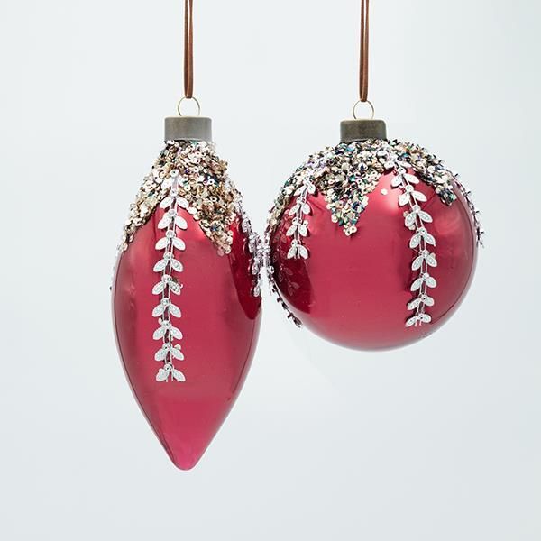 КОЛЕДНА СТЪКЛЕНА УКРАСА, БОРДО СЪС СРЕБЪРНА КАНТА, 2 ДИЗАЙНА, КОМПЛЕКТ ОТ 4 БРОЯ, 10 см