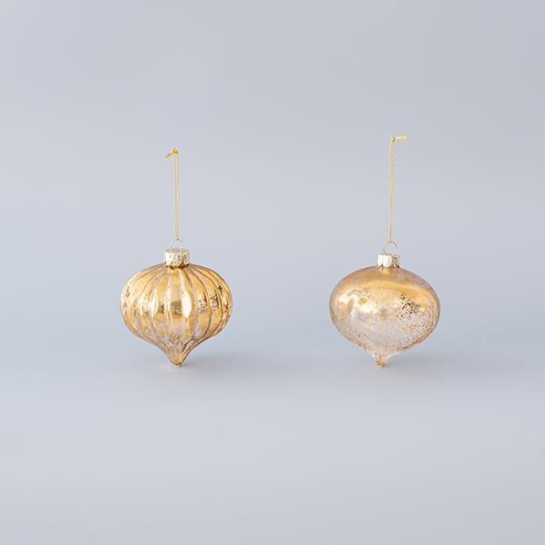 КОЛЕДНА СТЪКЛЕНА УКРАСА, ВИСУЛКА, ЗЛАТНА, 2 ДИЗАЙНА, КОМПЛЕКТ ОТ 4 БРОЯ, 8 см