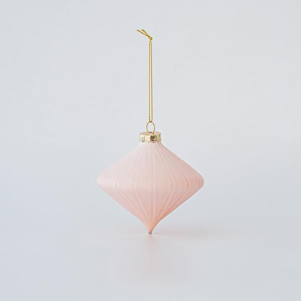 КОЛЕДНА СТЪКЛЕНА УКРАСА, РОЗОВА МАТЕРИАЛ, ФОРМА НА ДИАМАНТ, КОМПЛЕКТ ОТ 4 БРОЯ, 8 см