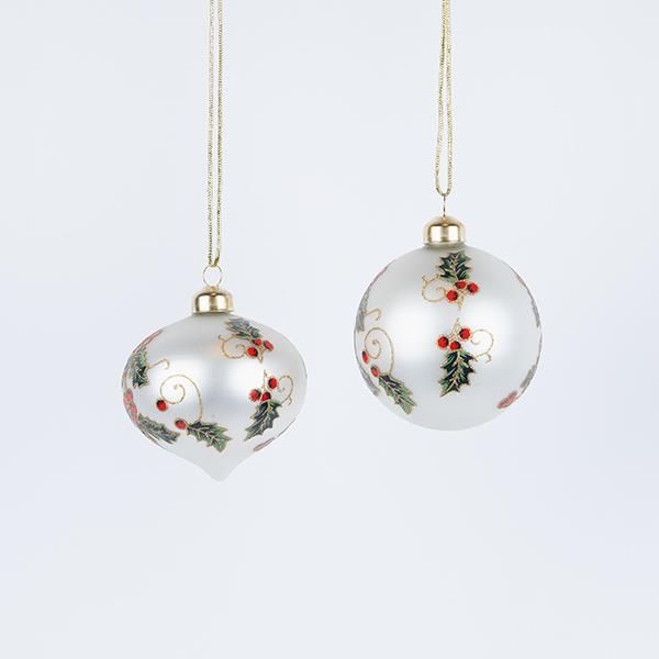 КОЛЕДНА СТЪКЛЕНА УКРАСА, С РИСУВАН ИМЕЛ, В 2 ФОРМИ, КОМПЛЕКТ ОТ 4 БРОЯ, 8 см