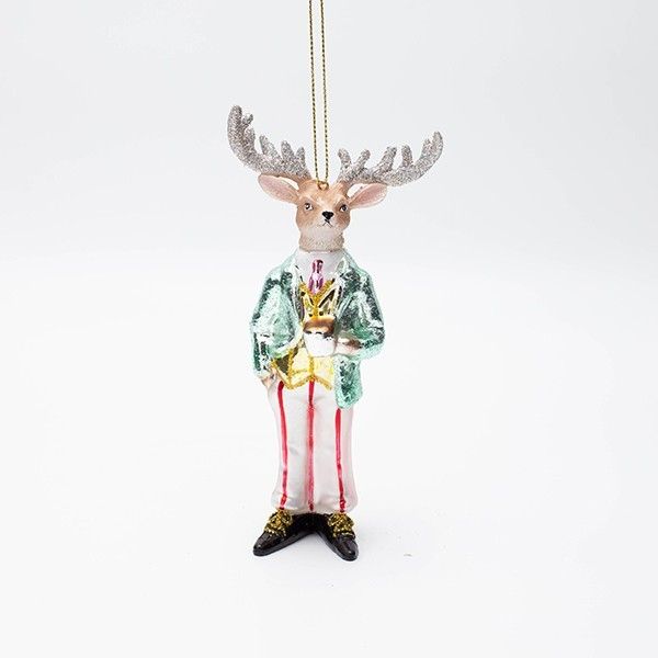 КОЛЕДНА СТЪКЛЕНА УКРАСА, СЕВЕРНИ ЕЛЕНИ, С ДРЕХИ ОТ ЗАКОНЧЕНИ ДРЕХИ, 16 см