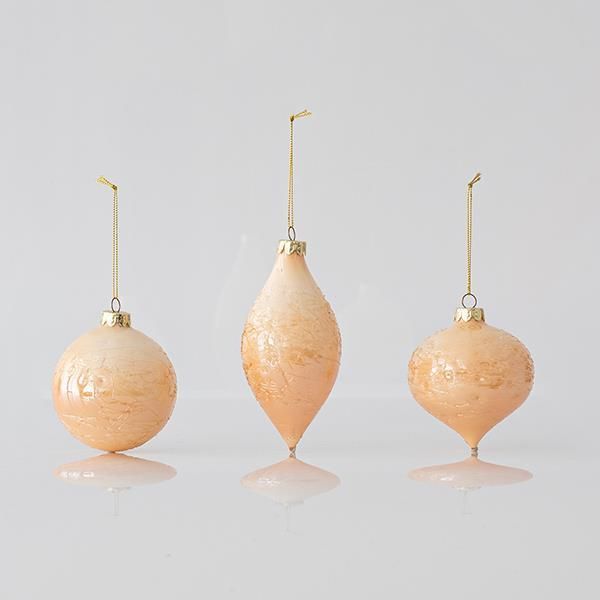 КОЛЕДНА СТЪКЛЕНА УКРАСА, ЦВЯТ КАЙСИЯ, В 3 ФОРМИ, КОМПЛЕКТ ОТ 4 БРОЯ, 8 И 13 СМ