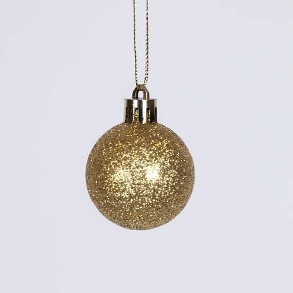 КОЛЕДНИ ПЛАСТМАСОВИ ТОПКИ, ЗЛАТНИ, С БЛЕСТЯЩИ ПАРЧЕНЦА, КОМПЛЕКТ 6 БР., 4 см (ТОП 120)