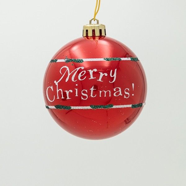 КОЛЕДНИ ПЛАСТМАСОВИ ТОПКИ, МАТИРАНИ ЧЕРВЕНИ С НАДПИС "ВЕСЕЛХА КОЛЕДА", КОМПЛЕКТ ОТ 6 БРОЯ, 8 см
