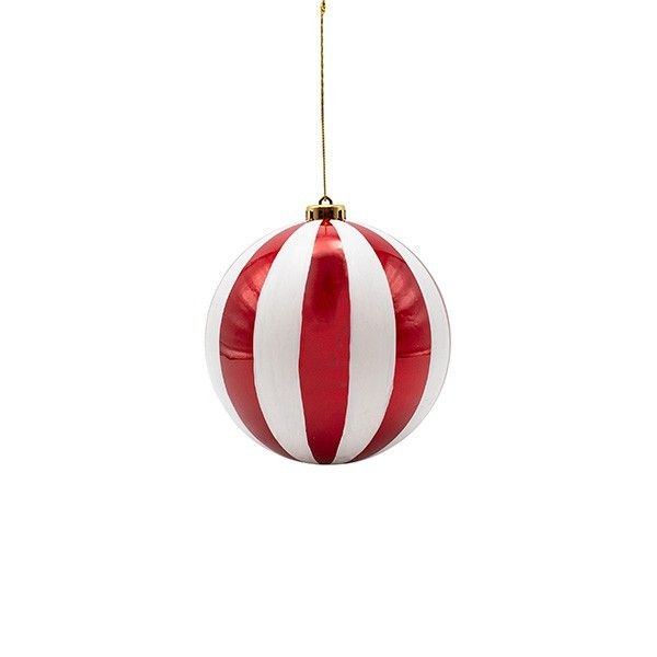 КОЛЕДНИ ПЛАСТМАСОВИ ТОПКИ, ЧЕРВЕНА ПЕРЛА С БЕЛИ РАИИ, КОМПЛЕКТ ОТ 6 БРОЯ, 10 см