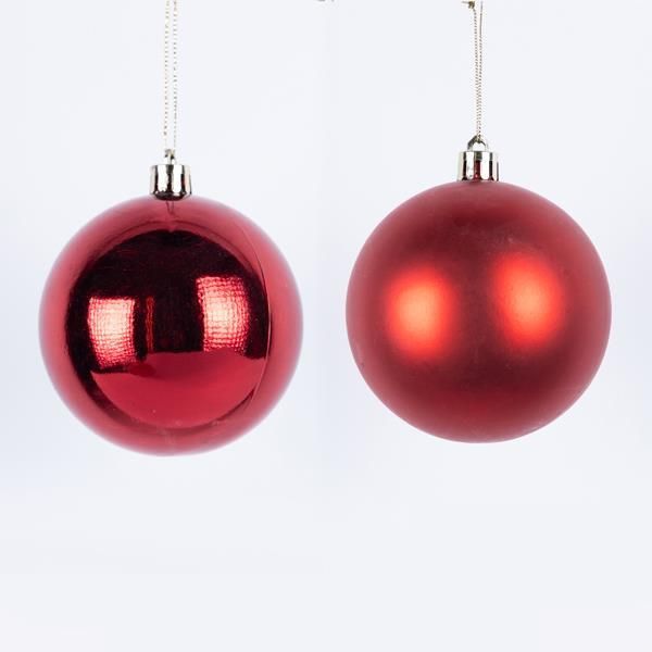 КОЛЕДНИ ПЛАСТМАСОВИ ТОПКИ, ЧЕРВЕНИ, БЛЕСТЯЩИ И МАТОВИ, КОМПЛЕКТ ОТ 8 БРОЯ, 6 см (ТОП 120)