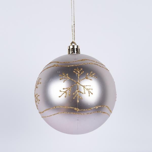 КОЛЕДНИ ПЛАСТМАСОВИ ТОПКИ, ШАМПАНСКО, СЪС СНЕЖИНКИ, КОМПЛЕКТ ОТ 6 БРОЯ, 8 см (ТОП 120)