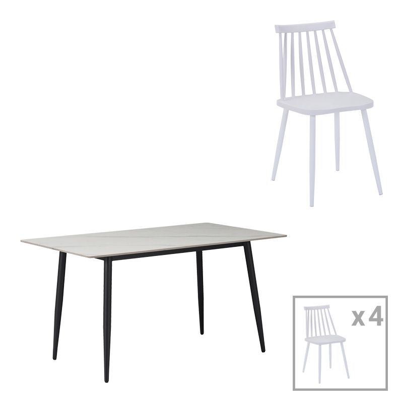 КОМПЛЕКТ ТРАПЕЗАРНА МАСА И СТОЛОВЕ AURORA I-GUSTAS ОТ 5 ЧАСТИ, БЯЛ МРАМОР-БЯЛ, 120X80X76СМ