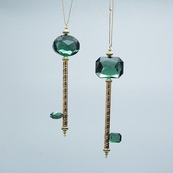 ПЛАСТМАСОВ КЛЮЧ, ЗЛАТЕН С ИЗУМРУДНО ЗЕЛЕН СКЪПОЦЕНЕН КАМЪК, 2 ДИЗАЙНА, 4.3x1.3x15.5см