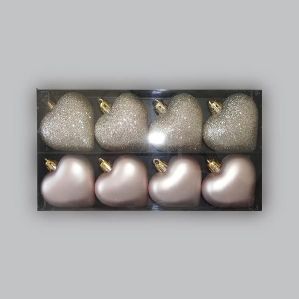 ПЛАСТМАСОВИ СЪРЦА, КОМПЛЕКТ 8 БРОЯ, 4 БРОЯ РОЗОВИ МАТОВИ, 4 БРОЯ ШАМПАНСКИ БЛЕСТЯЩИ, 6 см