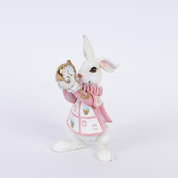 ДЕКОРАТИВНА МИШКА ОТ ПОЛИРЕЗИН, РОЗОВА СЪС ЗЛАТЕН ЧАСОВНИК, 7.5X9.5X13СМ