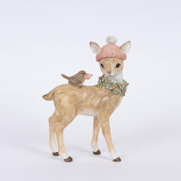 ДЕКОРАТИВНА ФИГУРА ОТ ПОЛИРЕЗИН ЕЛЕН С ПТИЦА, 10,5X4,5X15,5СМ