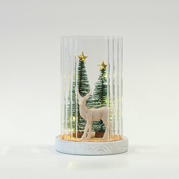 КОЛЕДНА СТЪКЛЕНА ДЕКОРАТИВНА ЕЛЕМЕНТ С ОСВЕТЛЕНИЕ, С ЕЛЕНИ И ДЪРВЕТА ВЪТРЕ, 11,5x11,5x18,5см