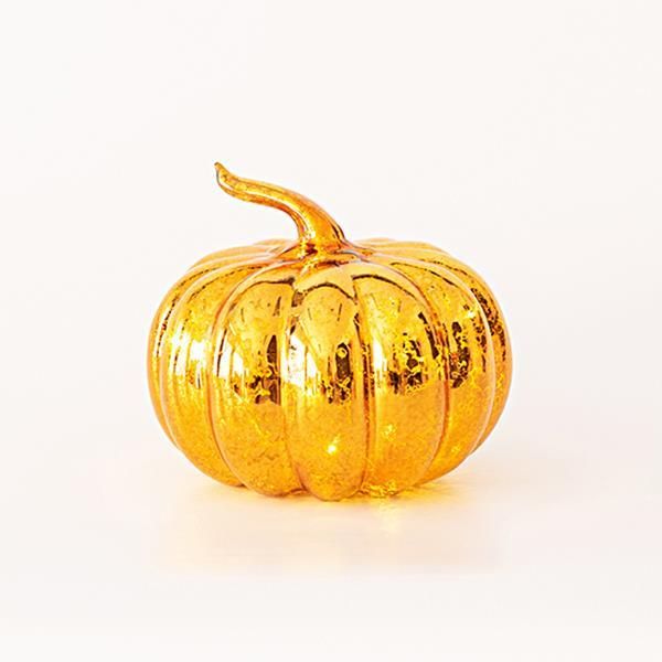 КОЛЕДНА СТЪКЛЕНА ТИКВА С LED ОСВЕТЛЕНИЕ, ЗАХРАНВАНА С БАТЕРИЯ, ОРАНЖЕВА, 17 см