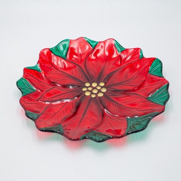 ПЛАТО С КОЛЕДНА ЗВЕЗДА, ЧЕРВЕНО, ДЕКОРАТИВНО СТЪКЛО, 31 СМ