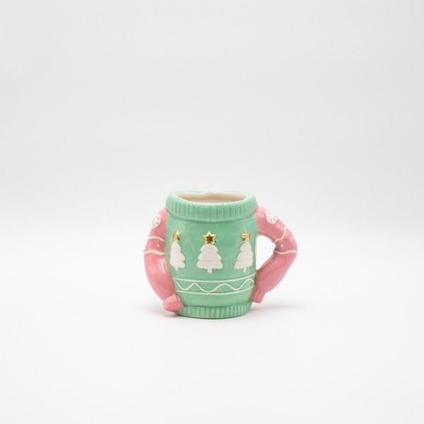 ЧАША, ПУЛОВЕР, МЕНТА СЪС ЗЛАТНИ ДРЪВЧЕТА, ДЕКОРАТИВНА, 15.5X12.2СМ