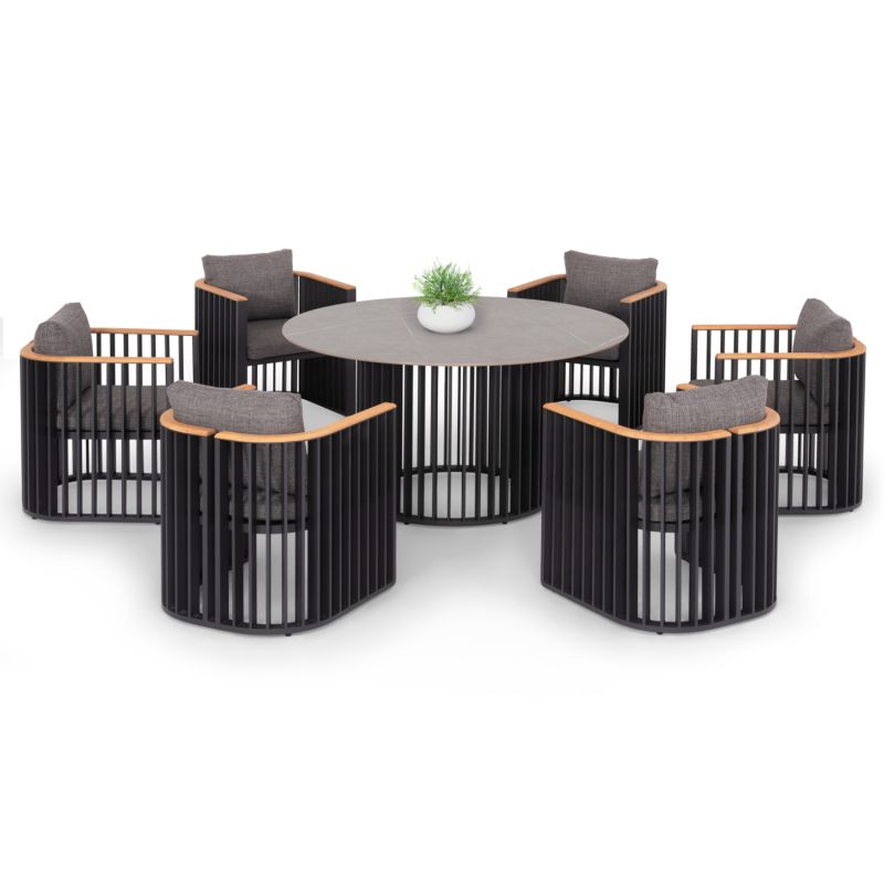 ГРАДИНСКИ КОМПЛЕКТ ETERNITY SM21129.02 С МАСА И 6 КРОСЯТА - ТЪМНО СИВ