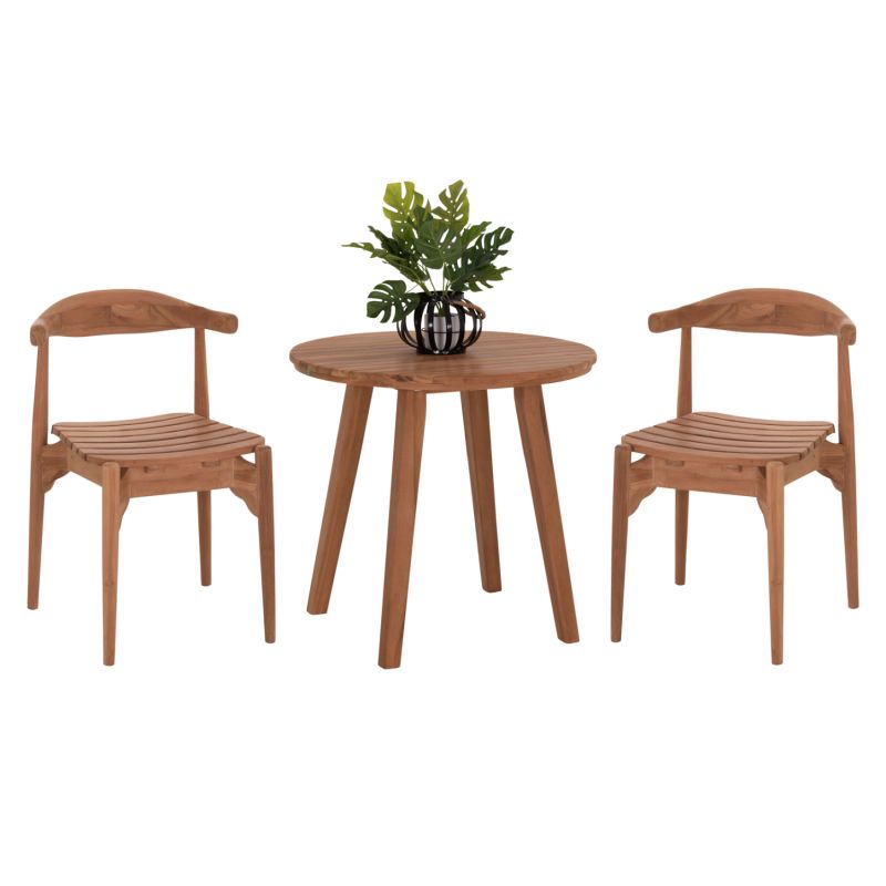 ГРАДИНСКИ ТРАПЕЗАРЕН КОМПЛЕКТ DANTE ΗΜ21289 КРЪГЛА МАСА И 2 ТРАПЕЗАРНИ СТОЛА - ТИКОВО ДЪРВО